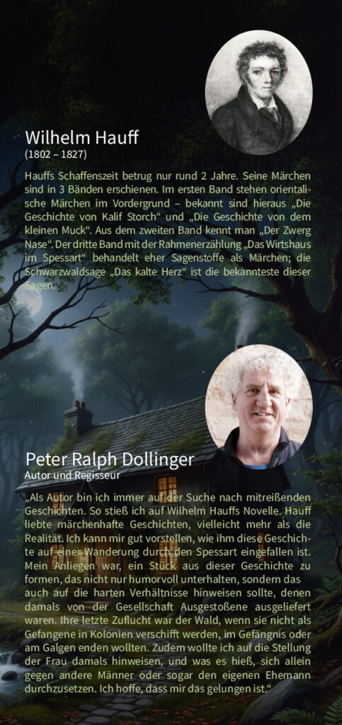 Der Spessart ist voller Geschichten und Überraschungen. Aber Obacht, auf dem Weg bleiben, nur nicht in die Nacht kommen! Und dennoch verirren sich eine Gräfin nebst Zofe und männlichem Schutz im dunklen Wald und retten sich in ein Gasthaus. Dort sind sie nicht allein …